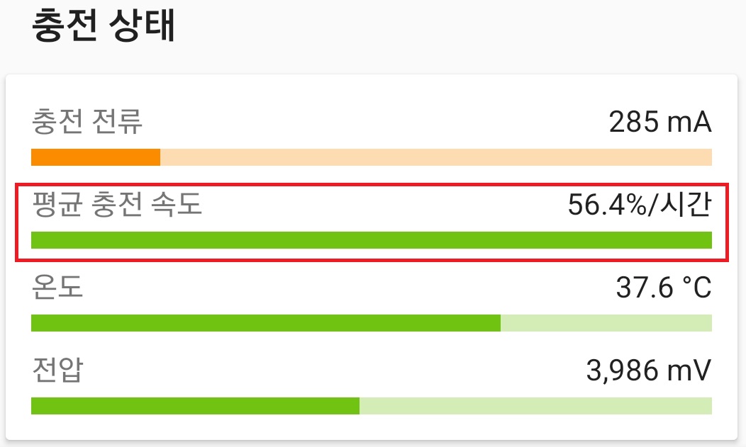 충전전압/전류는 화면이 켜지는 순간 제한되기 때문에 실제 충전량을 알수 없기 때문에 평균충천속도로 충천량을 추정하는 것이 맞다. (다른말로 화면이 켜지고 나서 캡쳐하는 시간에 따라 충전량의 편차가 좀 있다.)